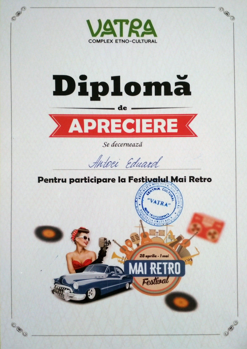 În perioada 28.04 – 01.05.2018 la Complexul etno-cultural „VATRA”, s-a desfăşurat Festivalul Mai Retro, ediţia a II-a, în cadrul căruia au participat profesorii Centrului de Excelenţă în Transporturi (membrii clubului „Automobilistul”). La acest eveniment au fost expuse automobile retro, adevărate bijuterii de epocă, care au fost restaurate de profesorii instituţiei.
